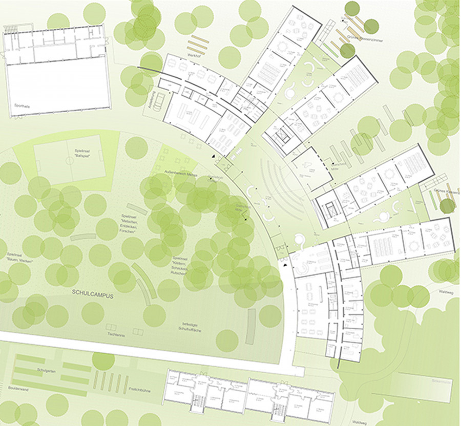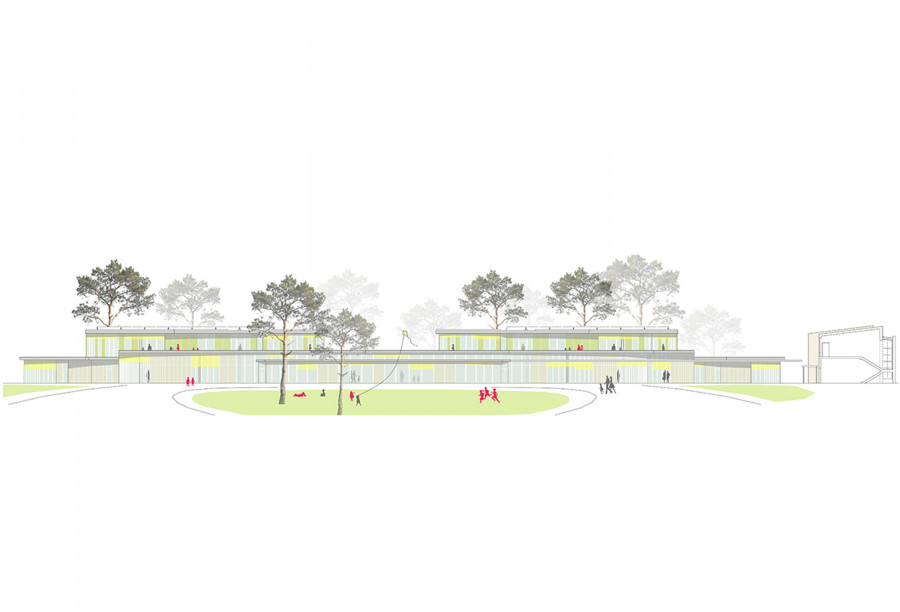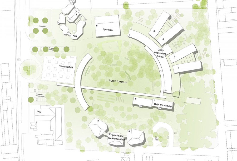 Neubau einer dreieinhalb-zügigen Grundschule auf dem Grundstück der Carlo-Mierendorff-Schule in Darmstadt-Griesheim. Die Struktur des Neubau-Entwurfs greift den Gedanken der Vernetzung von Innen- und Außenraum auf und bietet ausreichend Platz für das Ganztagskonzept.