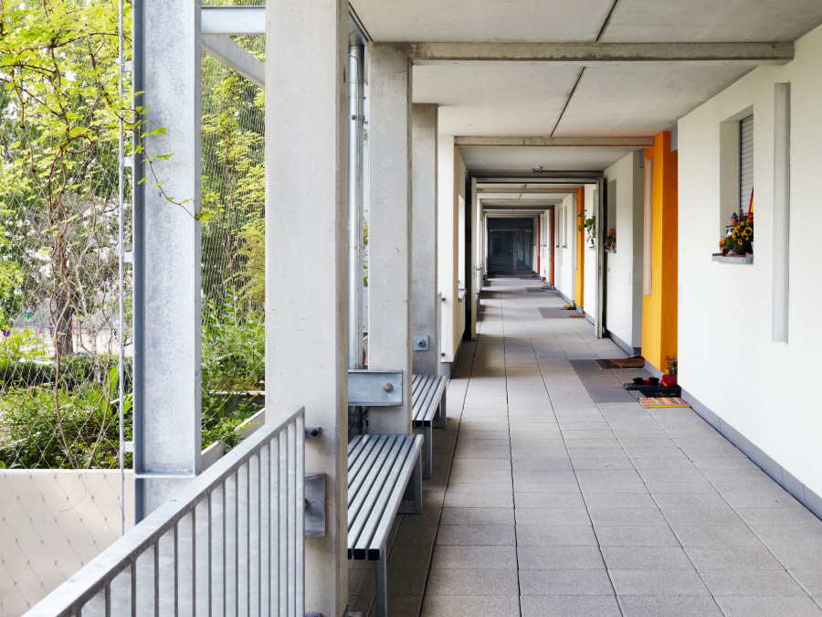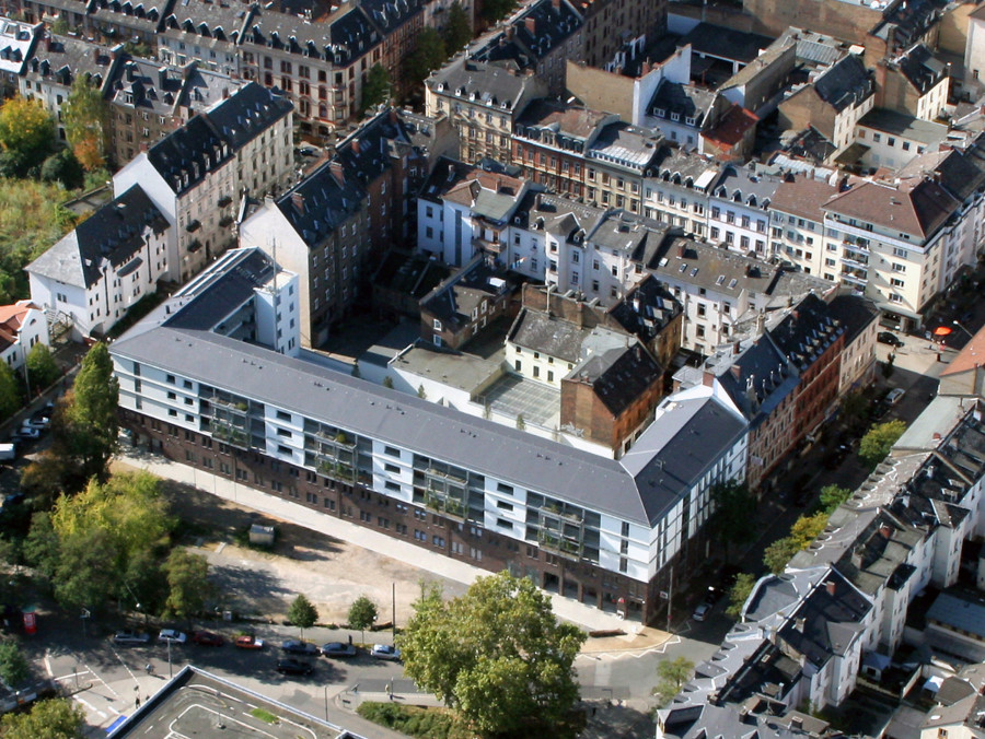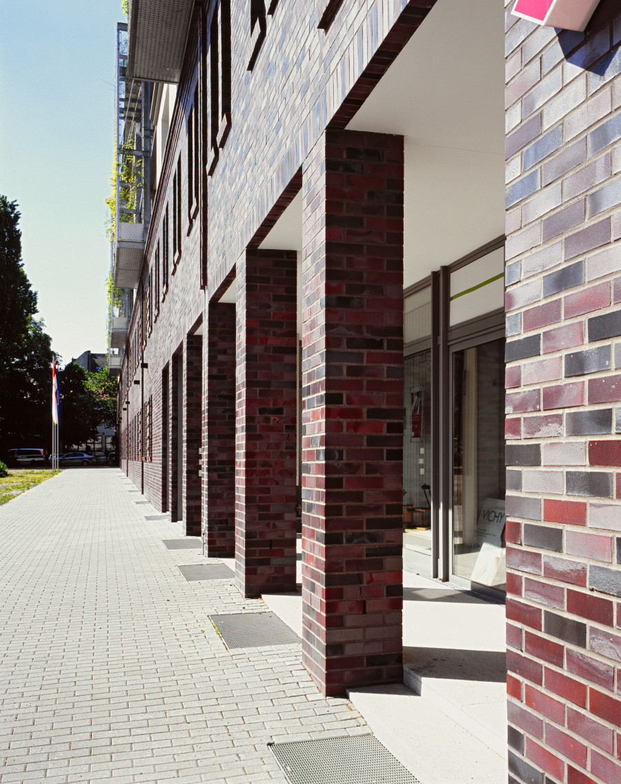 Neubau des 1. Polizeireviers in der Innenstadt Wiesbadens in Verbindung mit der Errichtung von 48 seniorengerechten Wohnungen, Gewerbeflächen und Tiefgarage im Rahmen eines Public-Private-Partnership-Verfahrens für das Land Hessen. Die Wohnungen sind zum größten Teil mit öffentlichen Mitteln gefördert. Die Ziegel - Optik des Erdgeschosses und des 1.Obergeschosses verankert das Bauwerk am Ort und nimmt durch die Wahl des Materials Bezug auf die gründerzeitliche Bebauung der benachbarten Häuser aus dem 19. Jahrhundert.