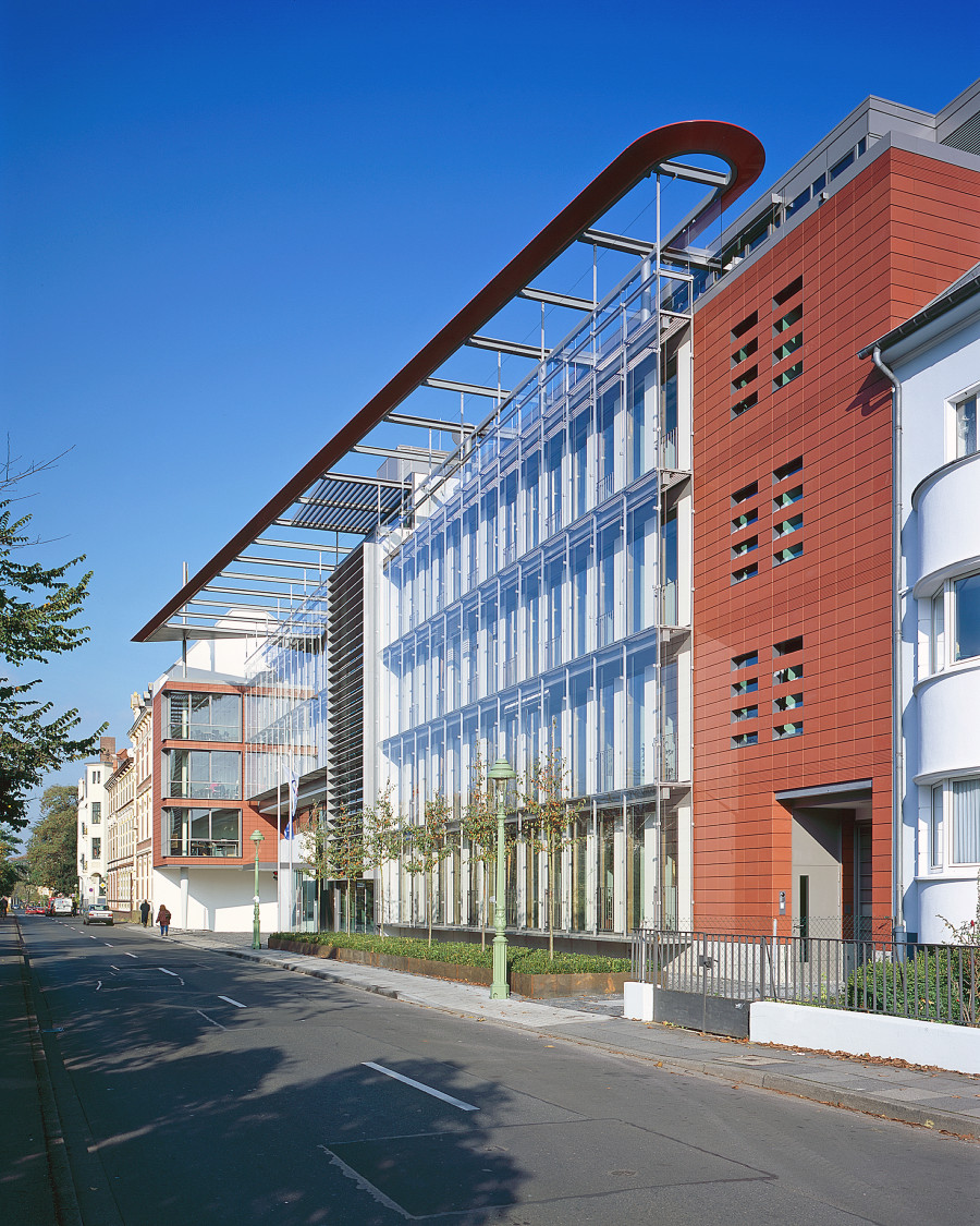 Neubau des „Sekretariats der Deutschen Bischofskonferenz“ in der Bonner Südstadt. Schließung einer Baulücke. Bürogebäude für circa 120 Mitarbeiterinnen und Mitarbeiter mit Konferenzräumen, Hauskapelle, Bibliothek und Tiefgarage in Niedrigenergiebauweise. Doppelfassade als baulicher Schallschutz.