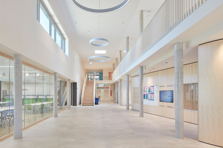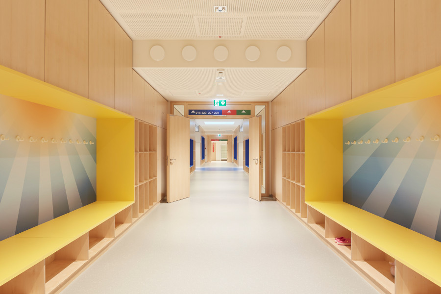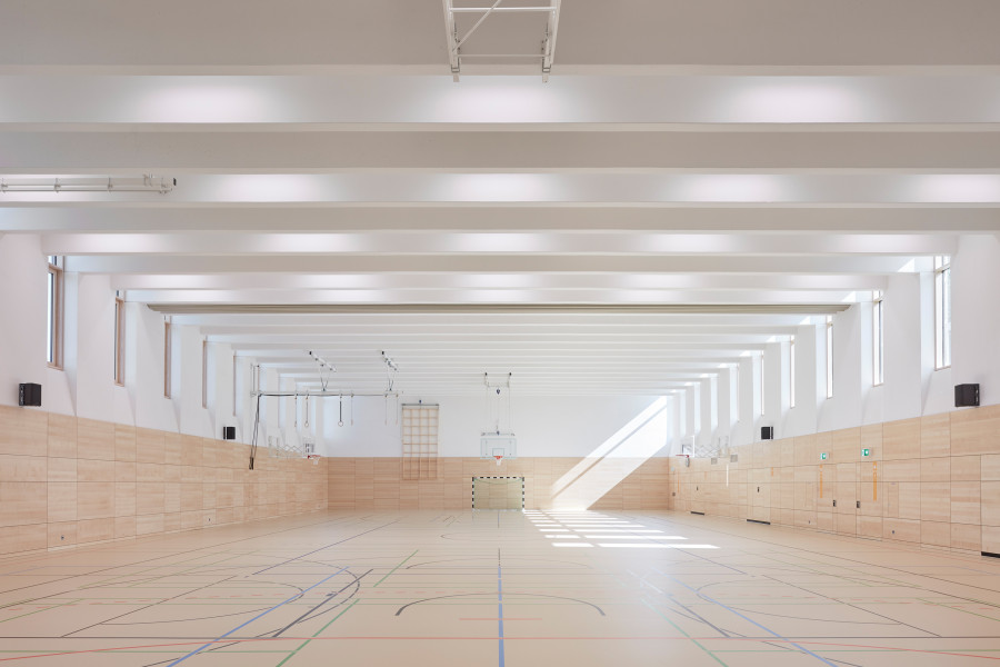 Neubau der 3,5-zügigen Fritz-Gansberg-Grundschule in Wiesbaden mit Zweifeldturnhalle, Mensa, Küche und Betreuungsräumen. Gliederung der Baukörper in einem Kammsystem mit Höhenstaffelung der Baukörper analog zur Hangtopografie. Im Eingangsbereich finden sich die typischen „Fritzi-Vögel“ (Idee: Gaby Bittner). Errichtung im Passivhaus-Standard nach PHPP-Nachweis.