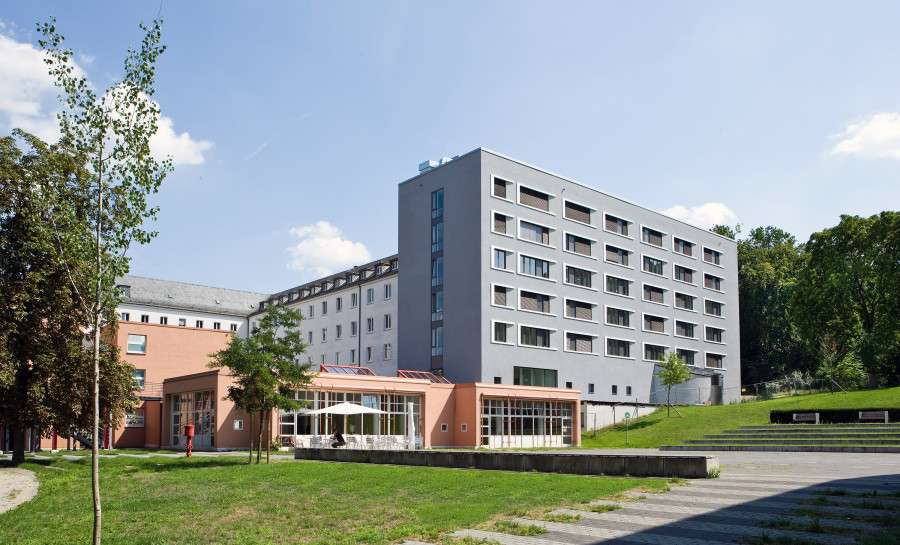 Umbau, Erweiterung und energetische Sanierung eines siebengeschossigen Wohnheimes der Jesuitenkommunität St. Georgen in Frankfurt-Oberrad. Aus der Aneinanderreihung von Einzelzimmern wird ein neues, gemeinschaftliches Wohnkonzept entwickelt. Neben den zentralen Räumen wie Hauskapelle, Speisesaal und Gemeinschaftszimmern entstehen 36 Ein- und Zweizimmerappartements. Energetische Sanierung der Gebäudehülle und der Haustechnik.