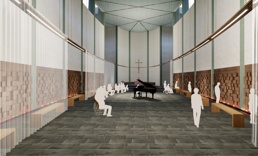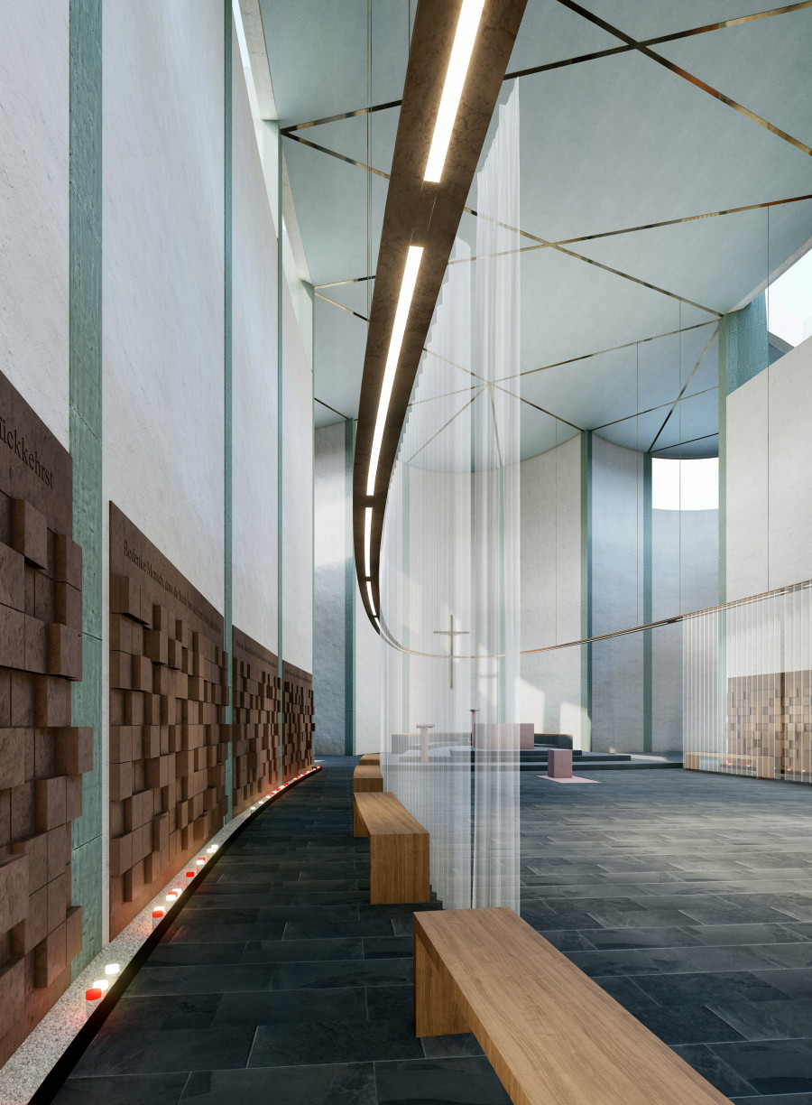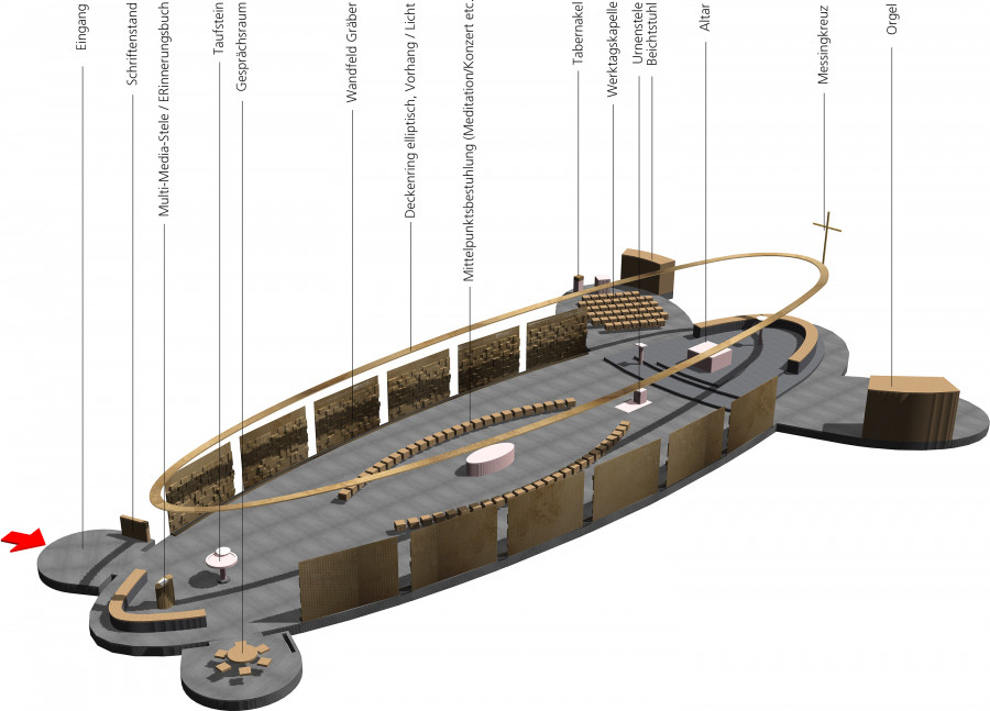 Der Entwurf sieht vor, St. Michael nicht nur als Begräbniskirche sondern als räumliches Zentrum der christlichen Trauerseelsorge umzugestalten. Hierzu wird ein geometrisch entwickeltes Urnengefäß aus Bronze als „Grabplatte“ vorgeschlagen, das sich durch Schichtung in drei Ebenen als sich permanent veränderndes Relief an den Außenwänden des Sakralraums zeigt.