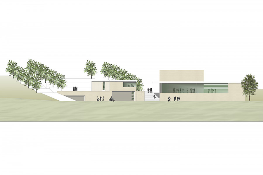 Generalplanung und Neubau einer Mehrzweckhalle mit Feuerwehr in Bingen-Kempten als Ergebnis eines gewonnenen EU-offenen Realisierungswettbewerbs mit vorgeschaltetem Bewerbungsverfahren. Das Grundstück, ein ehemaliger Weinberg, wird entsprechend seiner Topographie mit dem Thema „Trockenmauer“ als Leitmotiv terrassiert. Anordnung einer großen Freitreppe im Zwischenraum. Für beide Gebäude wird in Kombination mit einer hochwertigen Gebäudehülle sowie einer effizienten Gebäudetechnik der Passivhausstandard umgesetzt.