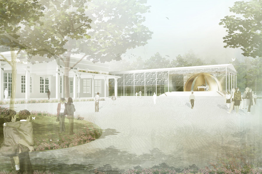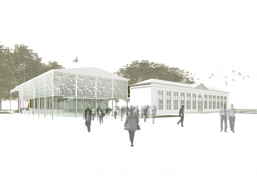 Rekonstruktion des Orangerie-Gebäudes und Neubau einer Konzertbühne mit Gastronomieflächen.