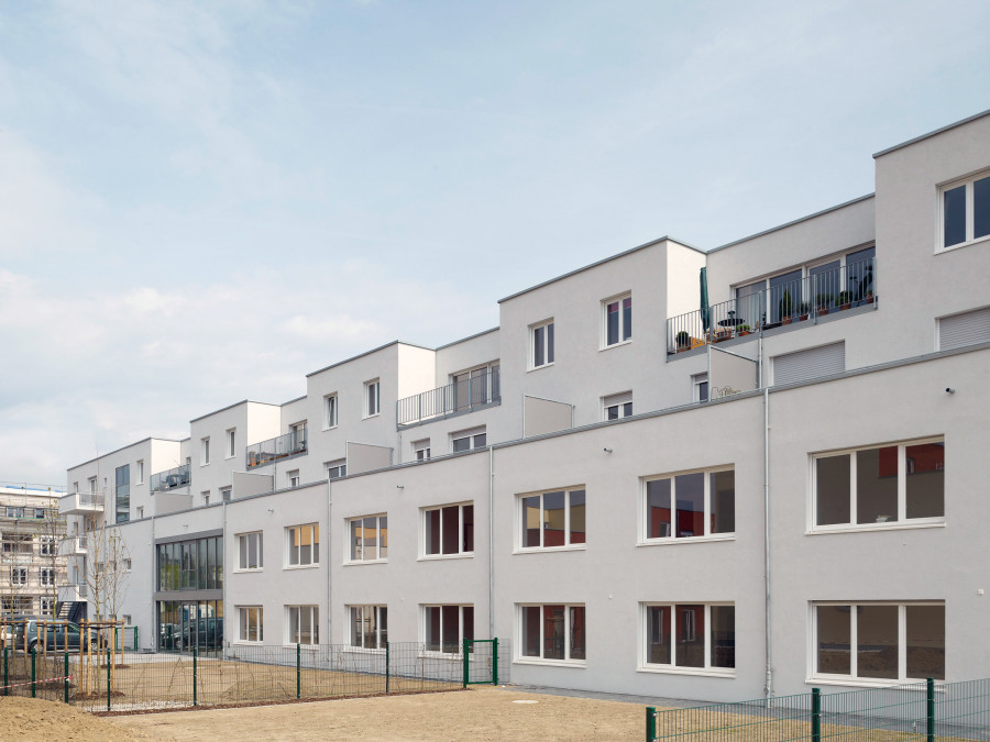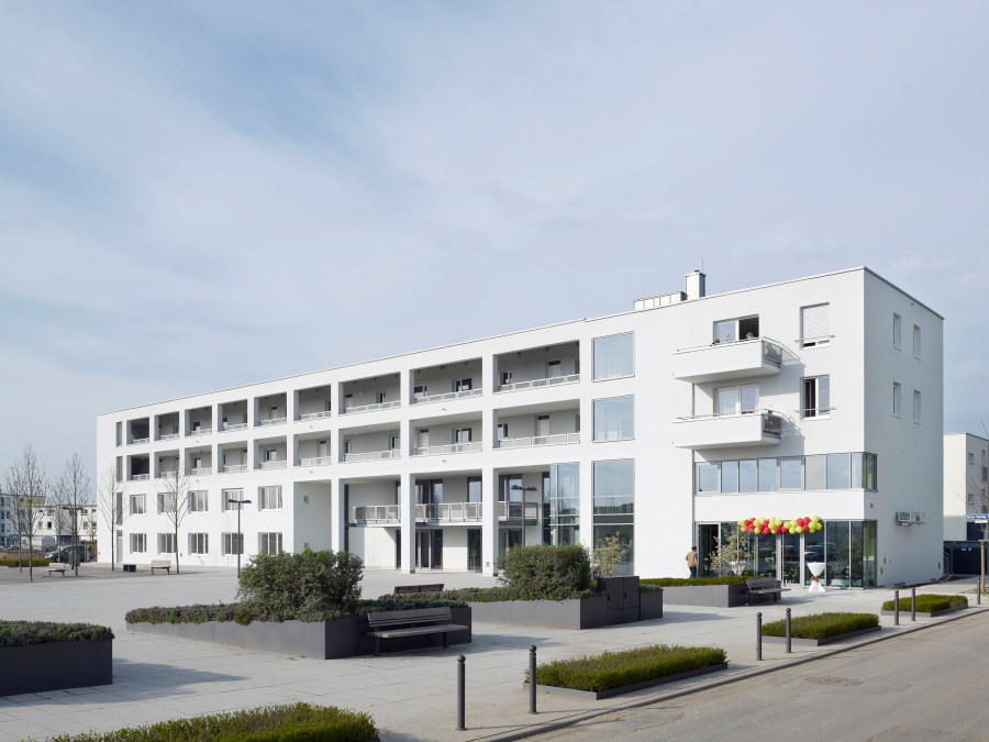 Neubau eines Seniorenwohnhauses mit zwei Pflegewohngruppen, einer externen Tagespflege sowie Seniorenwohnungen in einem Nachbarschaftsmodell mit einem Café im Erdgeschoss. Die unterschiedlichen Nutzungen bilden sich in einer dem Christa-Moering-Platz zugewandten halböffentlichen Zone mit Laubengängen und Loggien plastisch ab.